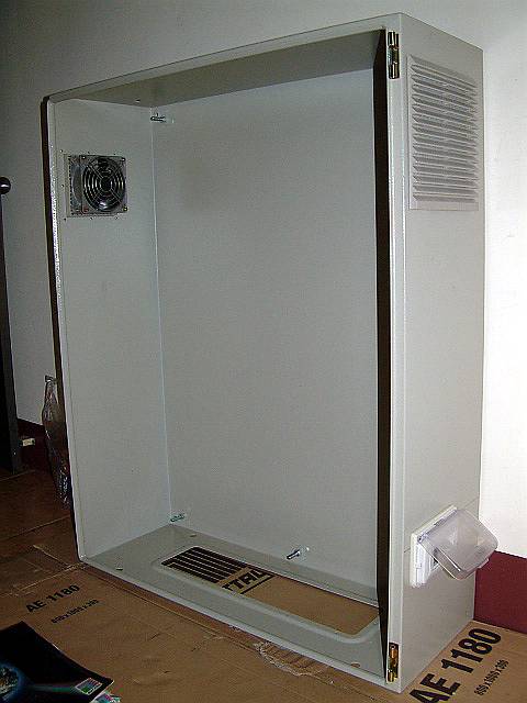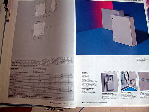 | 有鑑於我自己溫室裡的控制箱當初買的太小,後來要擴充就很困難。所以這次箱體買大一些,擴充性較好。 箱體採用世界第一箱體大廠,德國 RITTAL 的工業級機箱,光是它的型錄猶如電話號碼簿般厚厚的一本。 這個機箱到貨後實在太大(800W x 1000H x 300D),也太重(57 Kg),我搬不上我家的客房(3樓),最後是把它分解成箱體,底板,門板等3個部份後才一一扛上樓的,但每一個部份都還是很重。 |