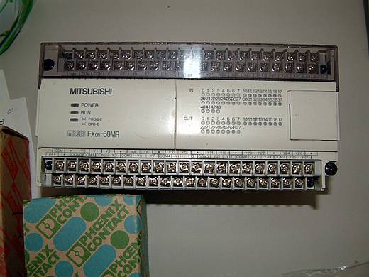 | 三菱的 FX0N-60MR PLC(可程式邏輯控制)。 | ![]() |
