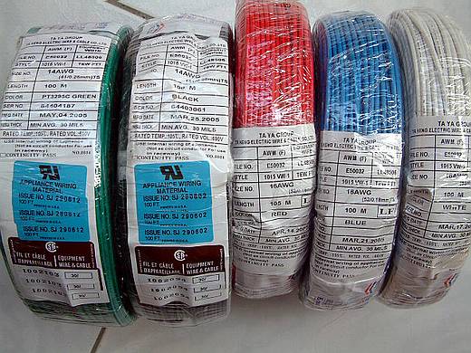 | 另外控制用的細電線也買了 3 捲不同顏色的,同樣的也是鍍錫線。 這種的一捲有 2000呎,其實裝配這個控制箱只會用到一點點,可能總共用不到 200 呎,但為了要分色使用也不得不買 3 捲,上圖的主電力線也是。 組裝這個控制箱大概就是賺這些剩餘的電線了。 |