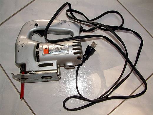 | 電動工具部份我自己沒有,以前上班是用公司的工具,現在離職了就沒得用了,為了節省經費所以向朋友借。 這是線鋸機,裝設金工用鋸片,是要在箱體的左右側面鋸出散熱風扇的方形孔。 |