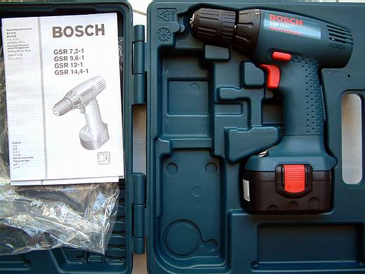 | BOSCH GSR 14,4-1,花了3500元,剛買回來的新工具。 充電器和另一個電池正在充電中 . . . . 看來組這一"腳"沒錢賺了,只能算賺到工具和電線吧。 應該是要買 BOSCH GSR 12(5000元)或 GSR 14,4(6000元)比較好用,但是經費實在不足,省點花,所以才買這個有加"-"的,型號加"-"是簡易型,功能差很多。 |