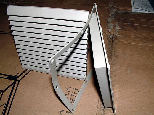 | 安裝扇熱風扇的風扇框 進氣孔由於有過濾棉,所以故意加大尺寸。 |