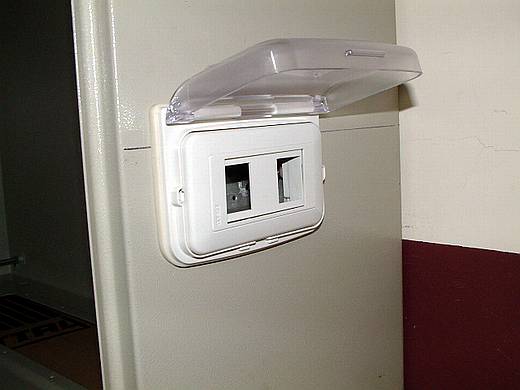 | 安裝外部臨時用插座。 還刻意去找這種有蓋子的插座面板。 |