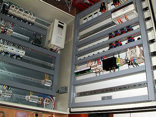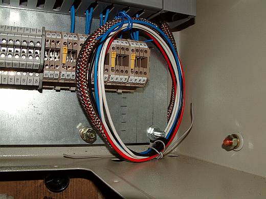 ![]() (圖一):箱體扇熱風扇的電源線 。 ![]() (圖二):面板的各種儀表所需的電源線也要連接到底板。(到現場再接線) ![]() (圖三):面板儀表有一些控制線也要連接到底板上。(也是到現場再接線) |