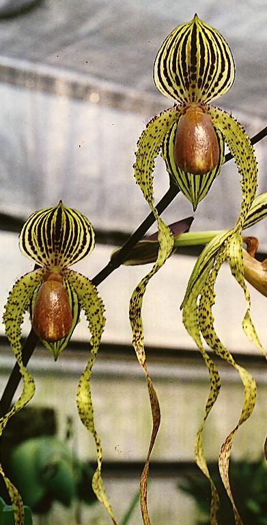 = Paph. Lady Isable  x  sanderianum,此個體為 331,是目前多花類拖鞋蘭交配 Paph. sanderianum 後花朵最大的品種。而這是其中數一數二的個體, 本人只有 1/ 8 的股份,因價格高達每芽 20 萬(兩個個體我都有份),各位蘭友在短時間之內可能還無法在比賽會場看到上述的兩株個體,因其只要一開花各股東們即相繼替他交配完成。其花苞猶如雞蛋一般,上萼瓣寬又長,底色為黃綠色(與 Paph. sanderianum 相同),線條褐色,開花時非常壯觀,其交配之後代目前為多花類拖鞋蘭的最新品種。