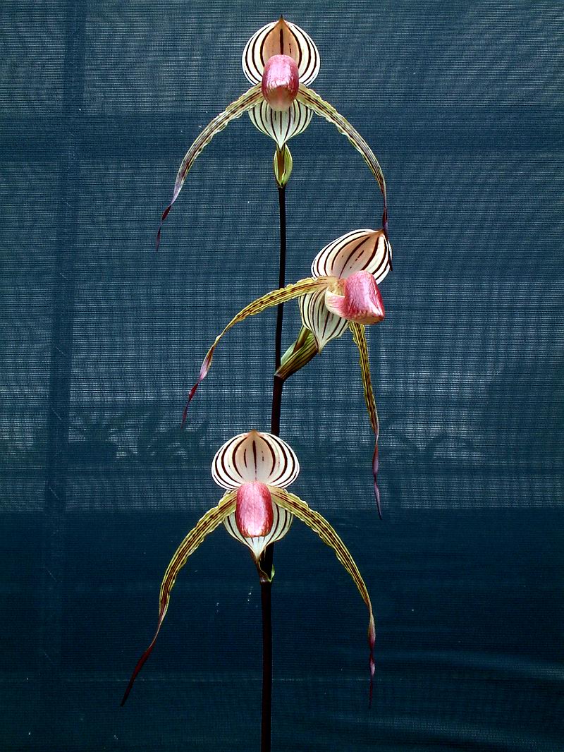 我有不少棵 Lady Isable 的親本個體,但最後被這一批自己早期的的實驗性育種給打敗了,她是 Paph. rothsschildianum ' TC-1' x  stonei 'TC-1',