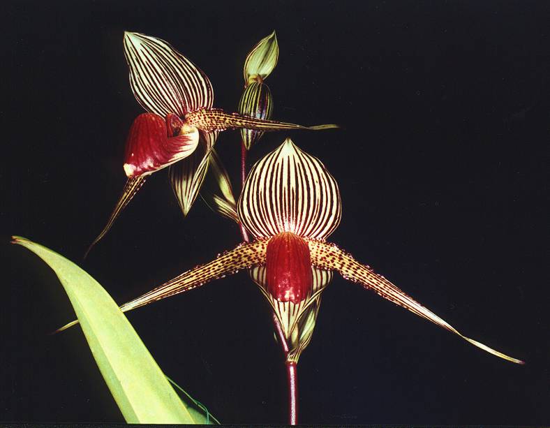 原種花,這是美國 The Orchid Zone 所育種的 Paph. rothschildianum 'Rex  x  Mont Millais',編號為 Z2135。此批花大朵的機會很高,但普遍顏色較淺,不過本個體花朵顏色很深,強過 266。植株很小但花卻很大(注意其花梗在 roths 裡算蠻細的,與其花朵不成比例),希望這些類似 Mont Millais 的優點能夠有強勢遺傳。